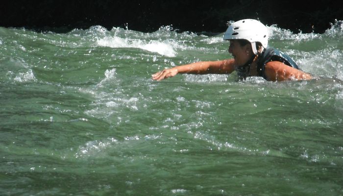 Uno de los mejores recuerdos que se llevan los participantes en el RAFTING y CANORAFTING, es cuando aprenden y practican la NATACIÓN en Aguas Bravas. Aprendemos a afrontar un rápido sin embarcación y a disfrutar de la fuerza del agua en completa seguridad.